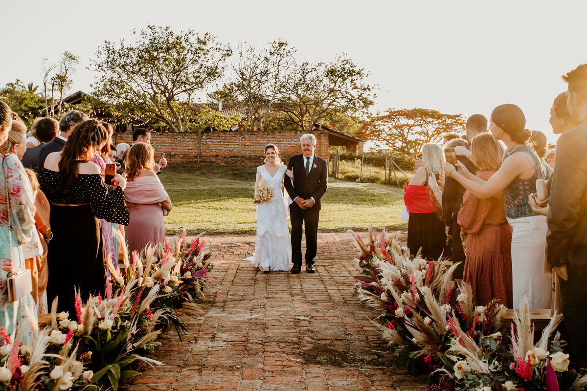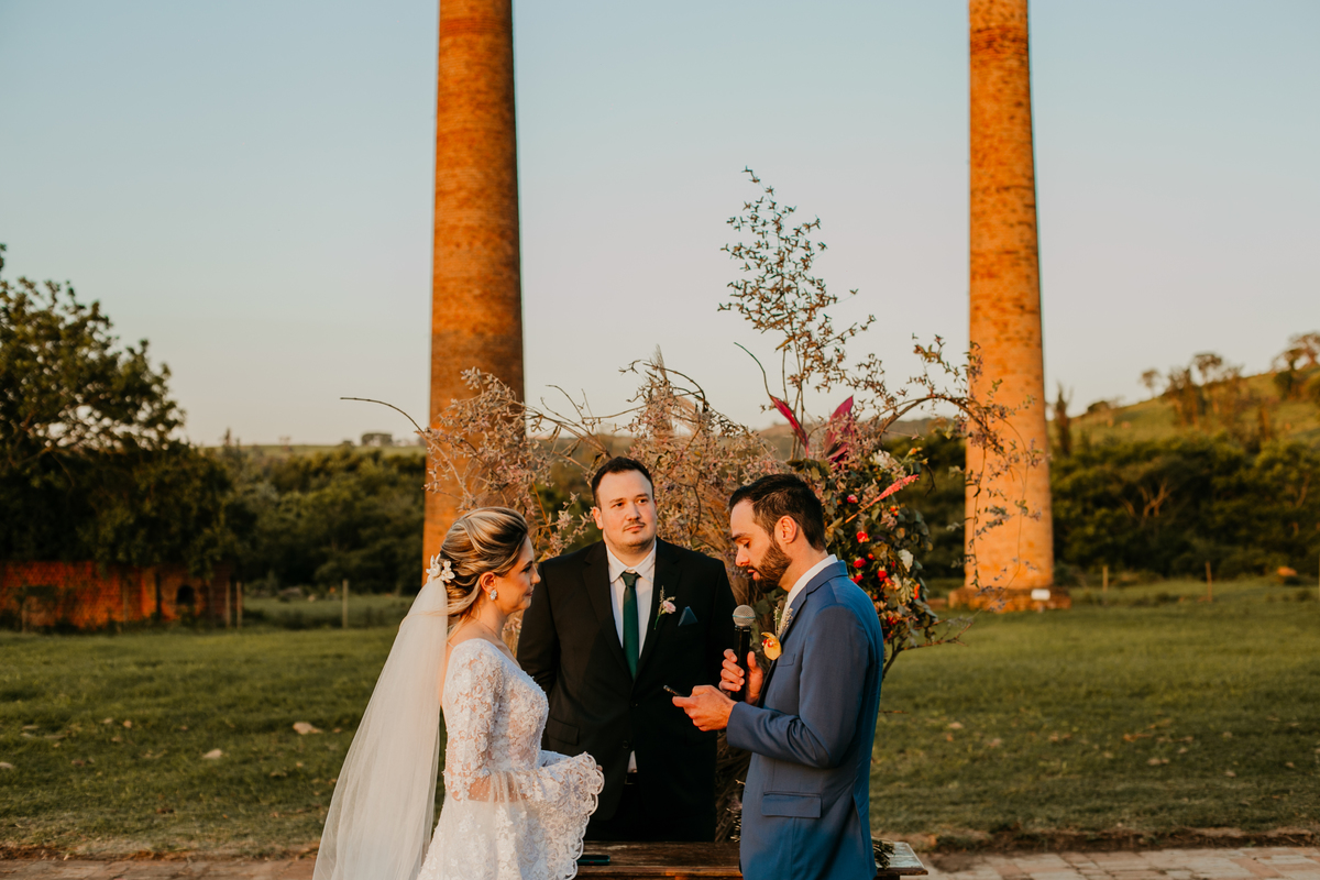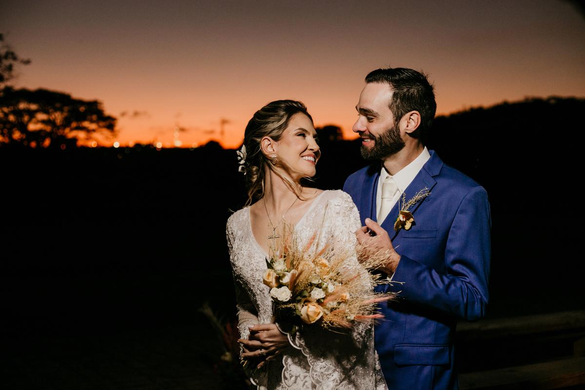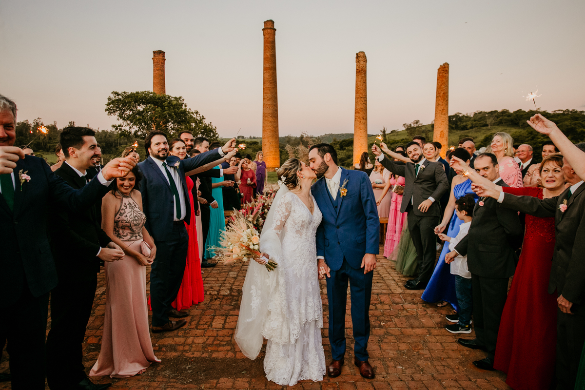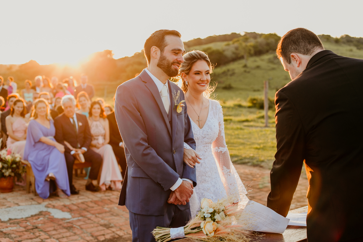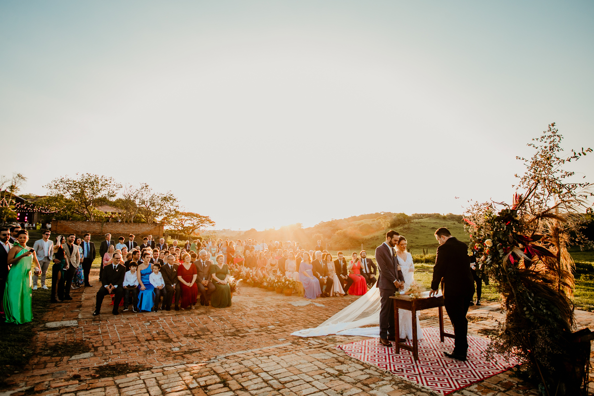 O casamento de Angélica e Guilherme foi uma verdadeira celebração de elegância e glamour. Realizado na Fazenda Paraíso, em Itu, o cenário não poderia ter sido mais perfeito: um pôr do sol deslumbrante, em frente às furnas, que criou o plano de fundo para uma cerimônia perfeita.