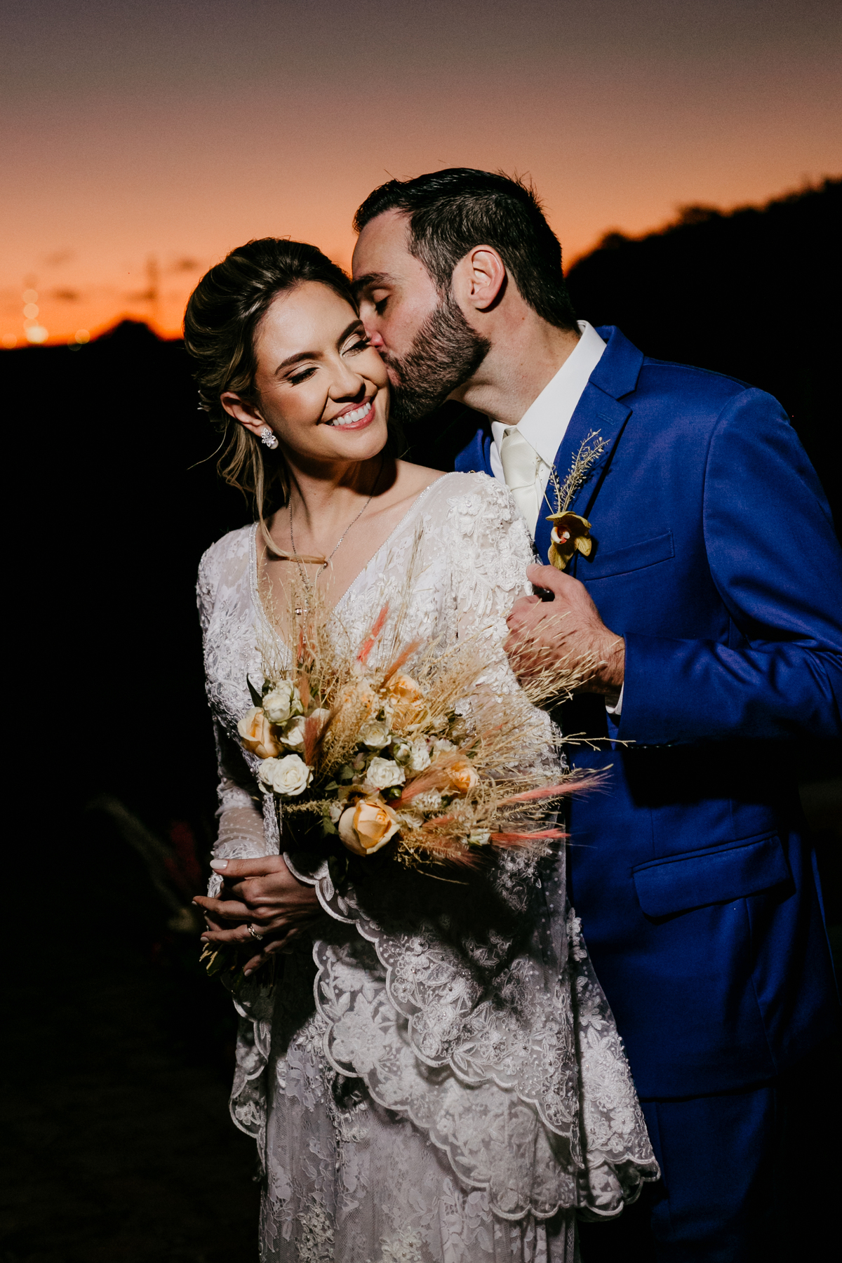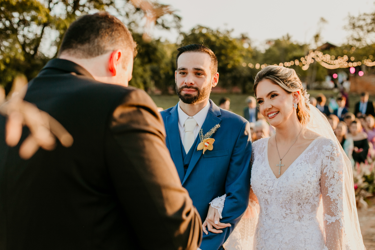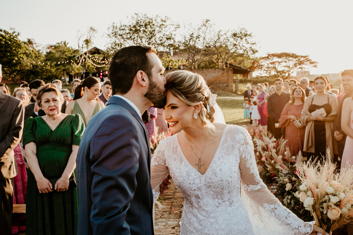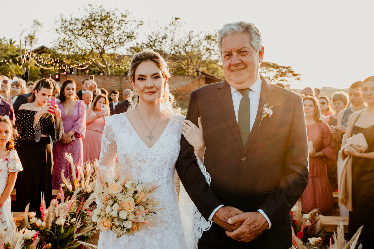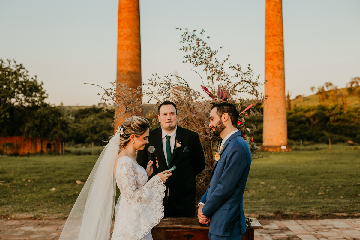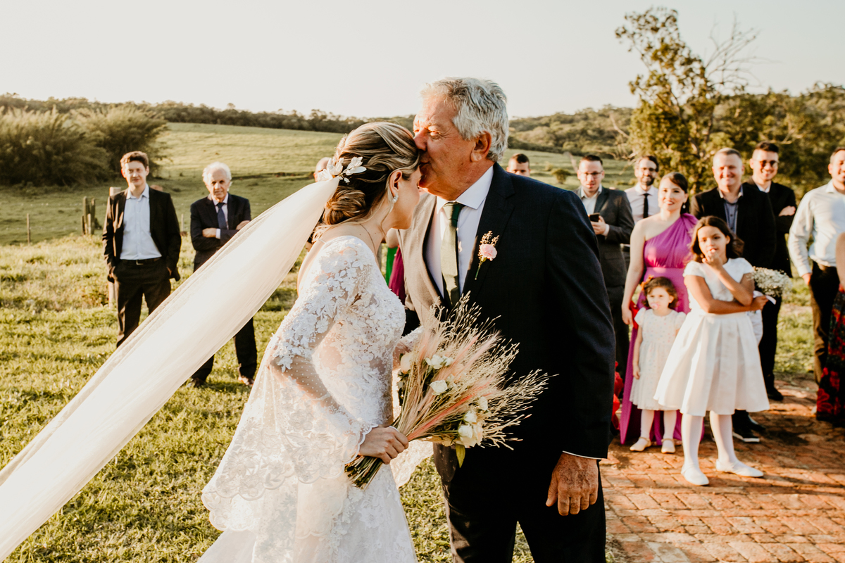 O casamento de Angélica e Guilherme foi uma verdadeira celebração de elegância e glamour. Realizado na Fazenda Paraíso, em Itu, o cenário não poderia ter sido mais perfeito: um pôr do sol deslumbrante, em frente às furnas, que criou o plano de fundo para uma cerimônia perfeita.