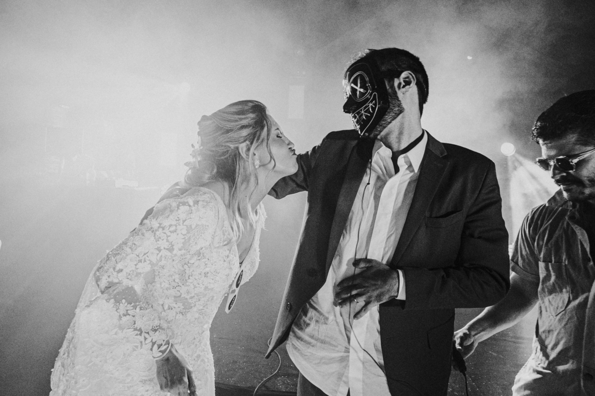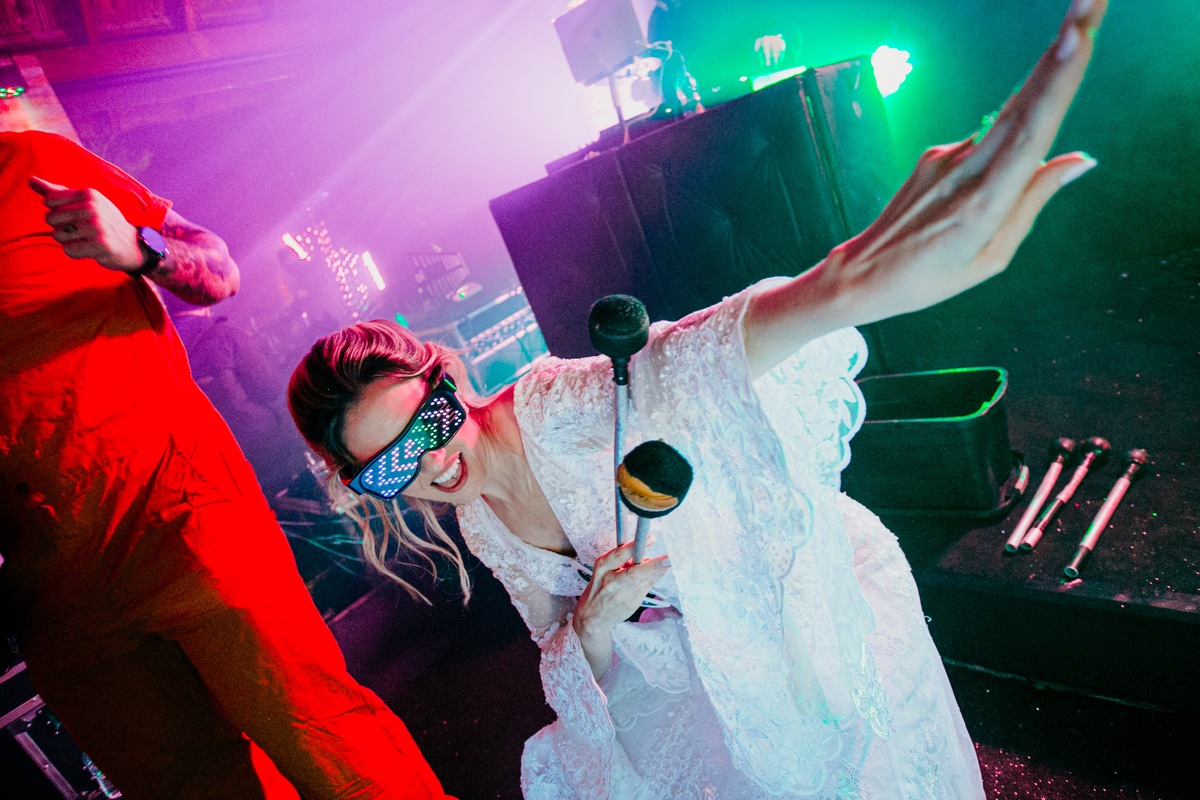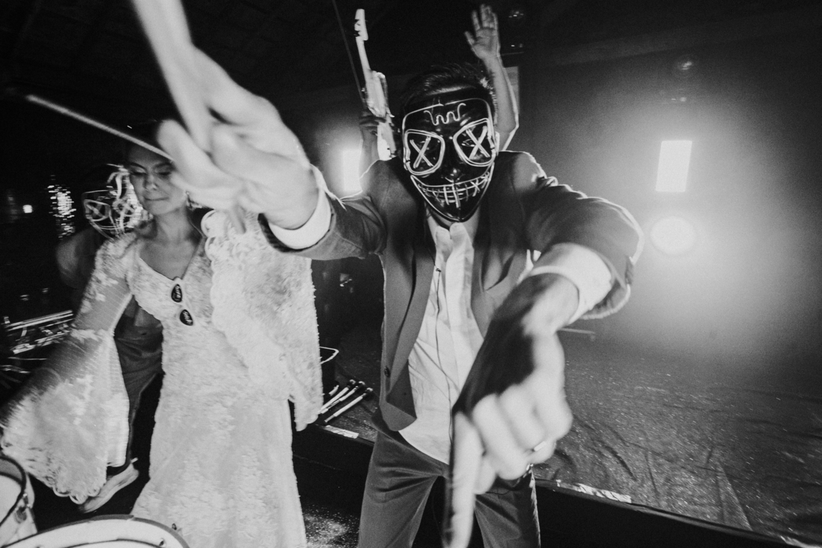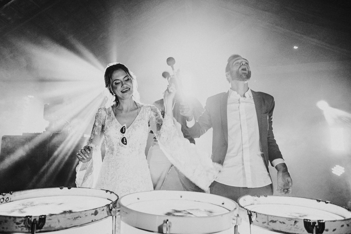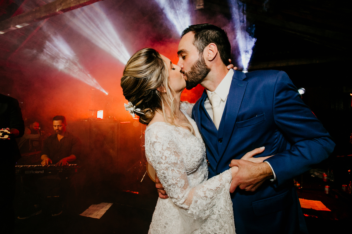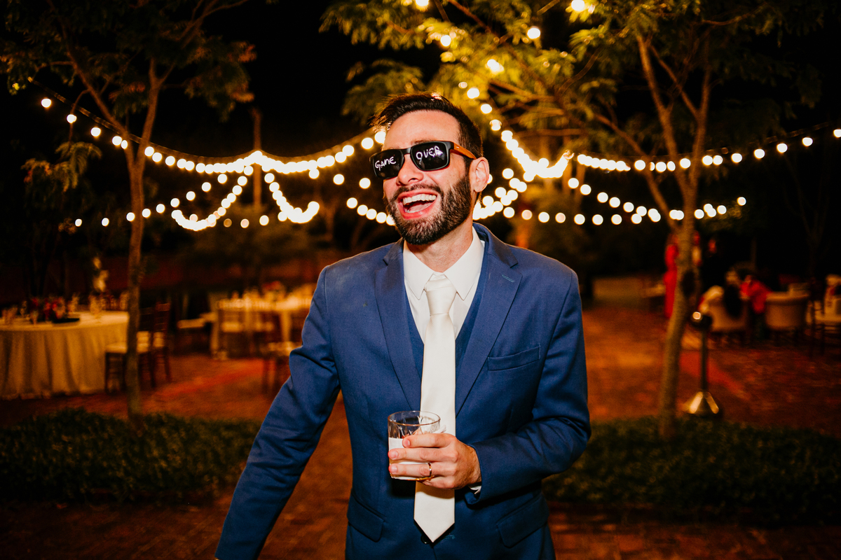 Depois, foi a vez da festa ganhar vida! A energia era contagiante, e a pista ferveu com uma banda ao vivo, seguida por um grupo de eletrohouse com saxofone e muito LED que levou a galera à loucura,. O ponto alto da noite, para os palmeirenses de coração, foi quando o casal não resistiu e puxou o hino do Palmeiras, exibindo a bandeira com orgulho para os convidados.