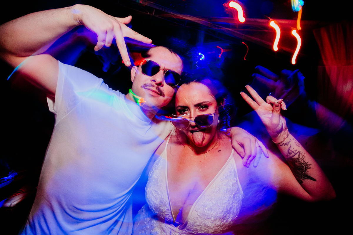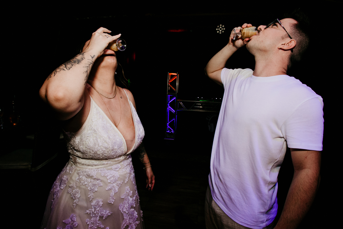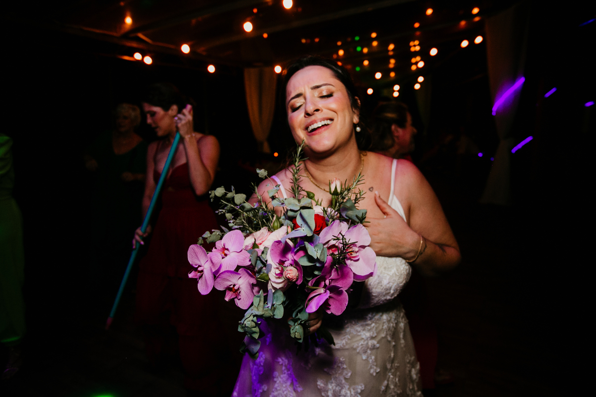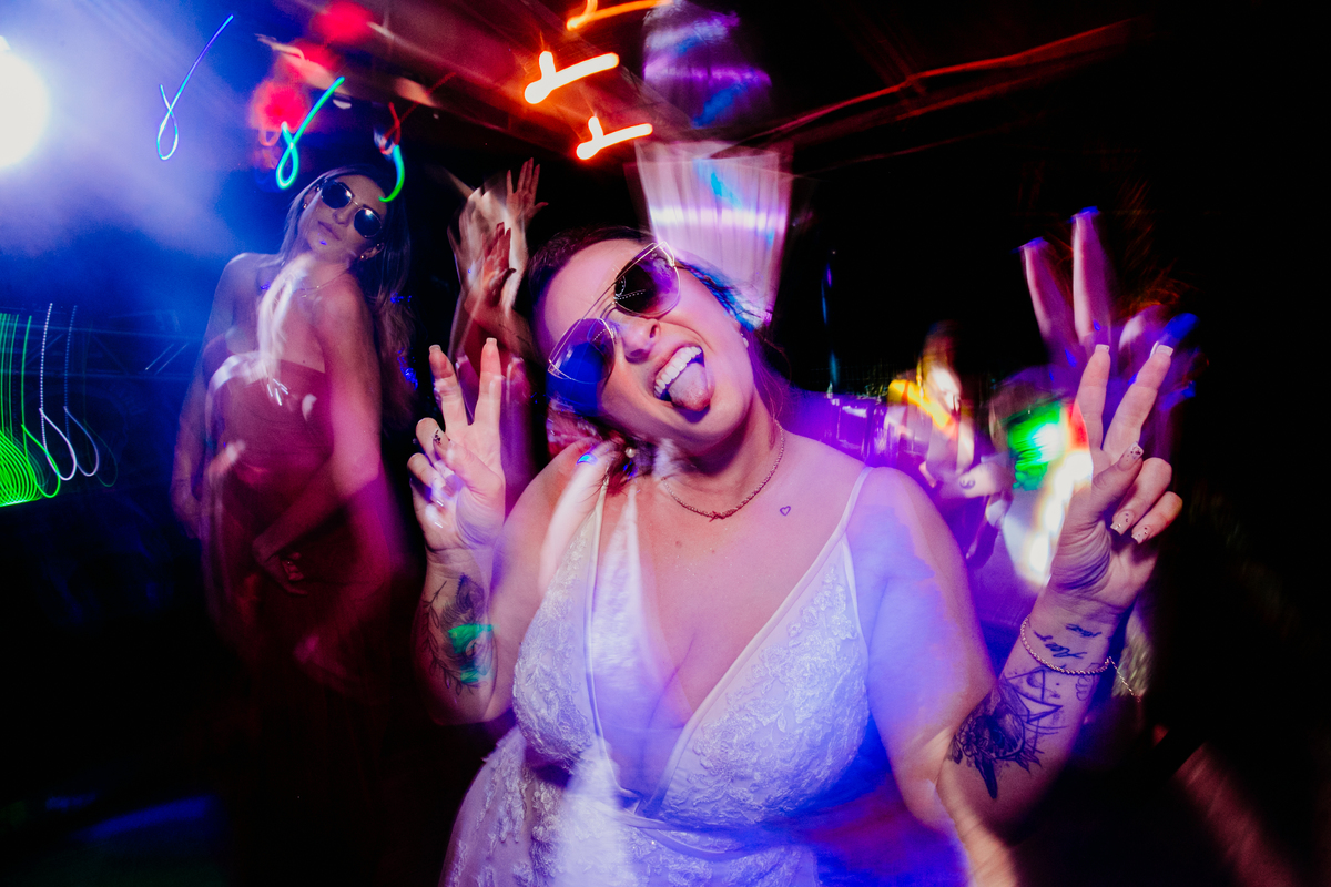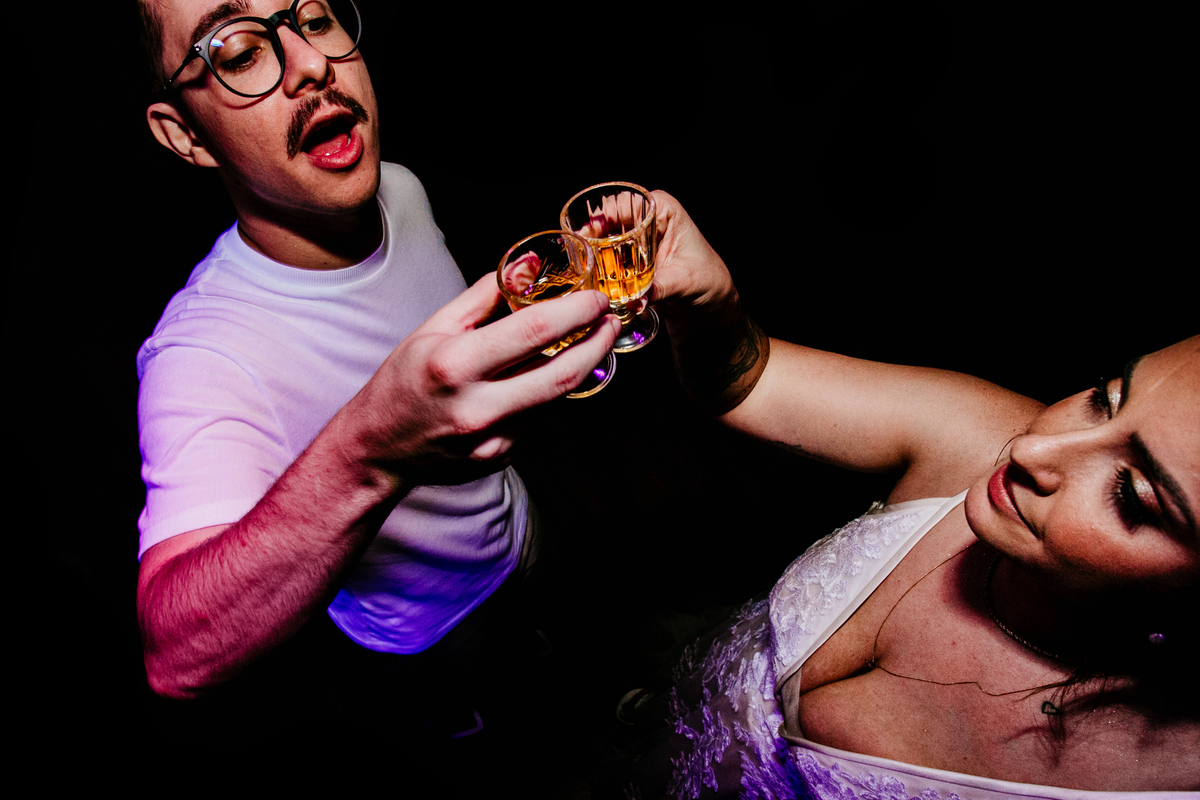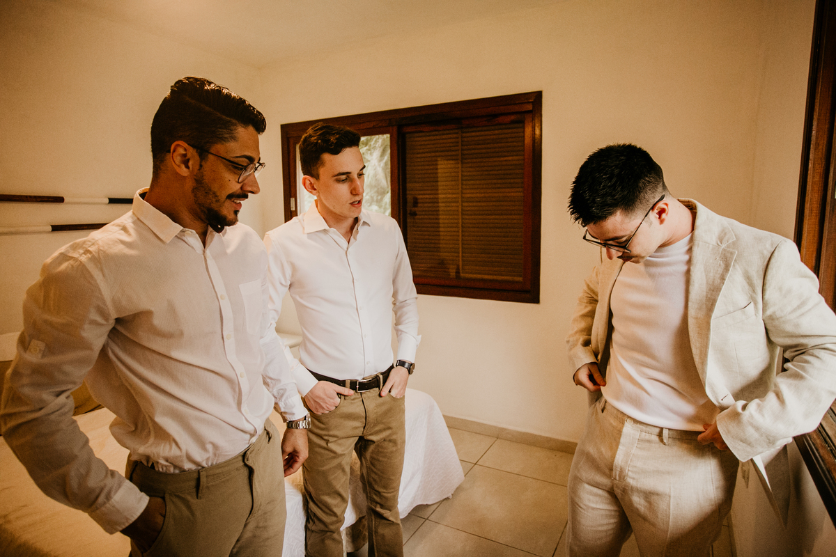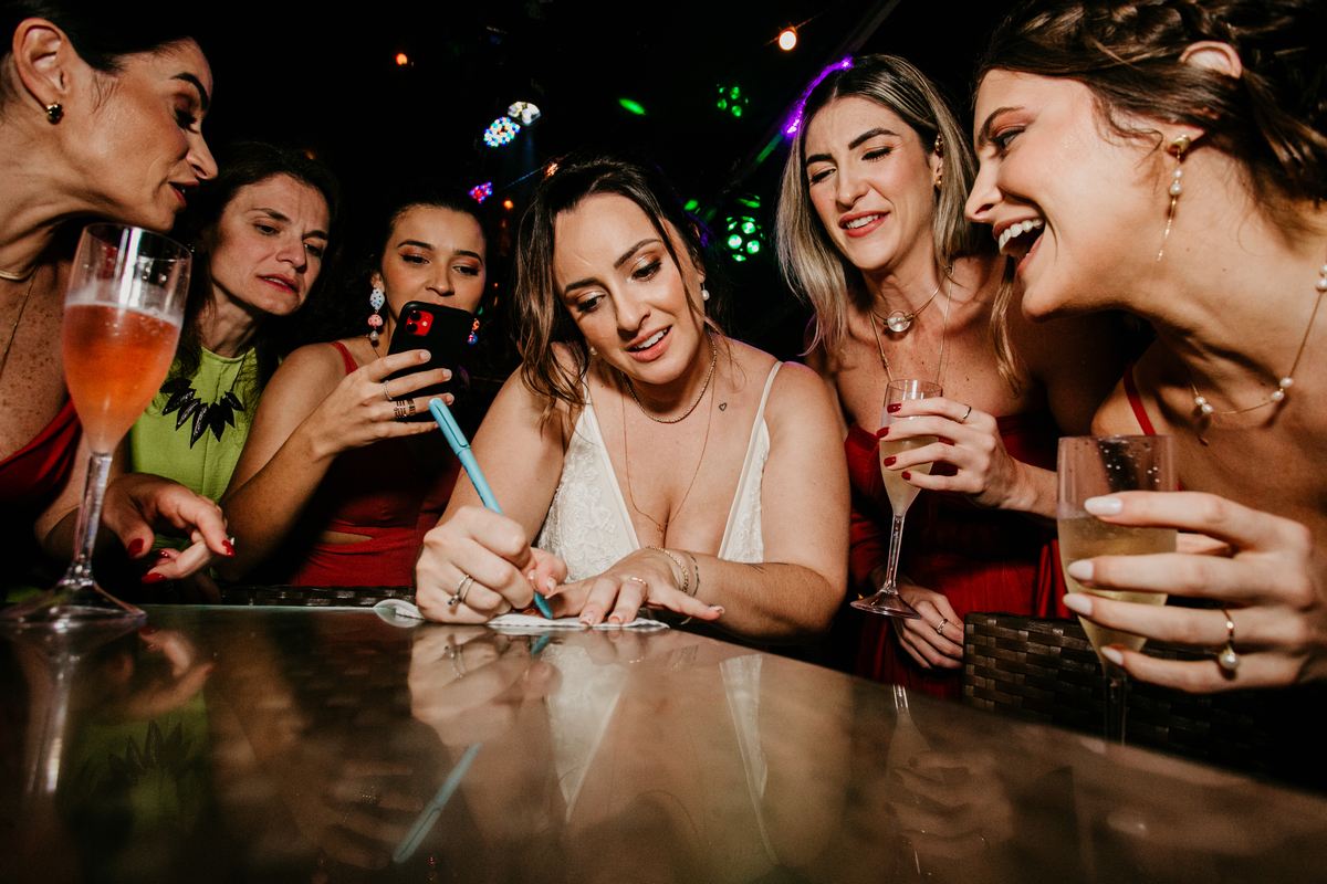 Apesar de ser uma festa pequena, a galera se jogou! Todos se divertiram como se não houvesse amanhã: muita bebida, risadas e aquela energia contagiante. Pra fechar o dia da melhor forma, o casal e os convidados foram direto para o mar, se molhar, curtir o momento e ainda pularam ondas, em uma vibe de renovação e boas energias.