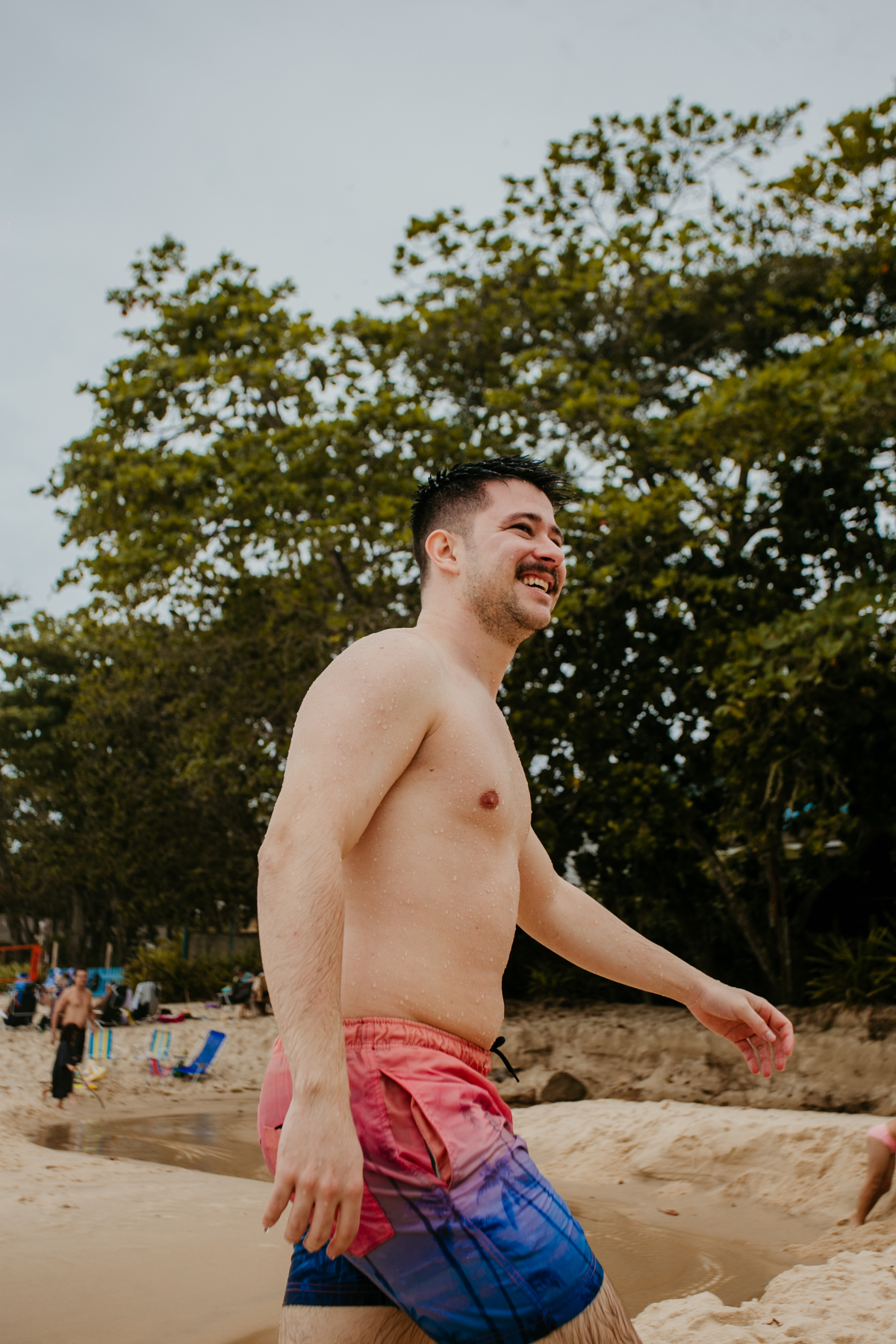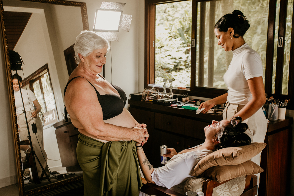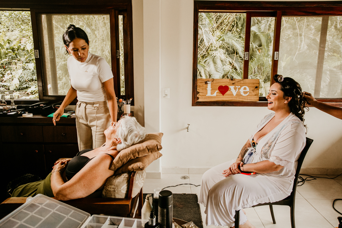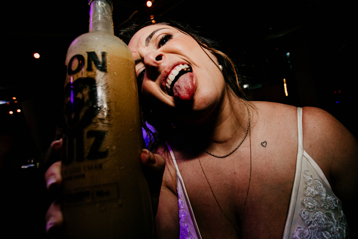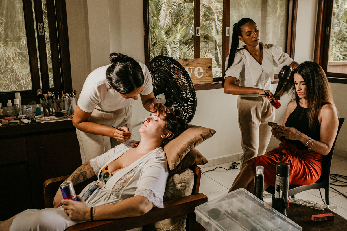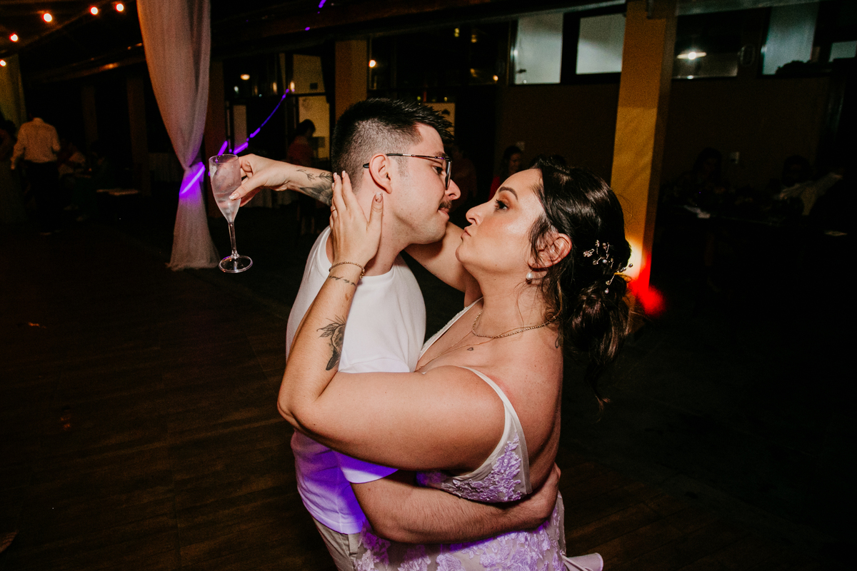 Apesar de ser uma festa pequena, a galera se jogou! Todos se divertiram como se não houvesse amanhã: muita bebida, risadas e aquela energia contagiante. Pra fechar o dia da melhor forma, o casal e os convidados foram direto para o mar, se molhar, curtir o momento e ainda pularam ondas, em uma vibe de renovação e boas energias.